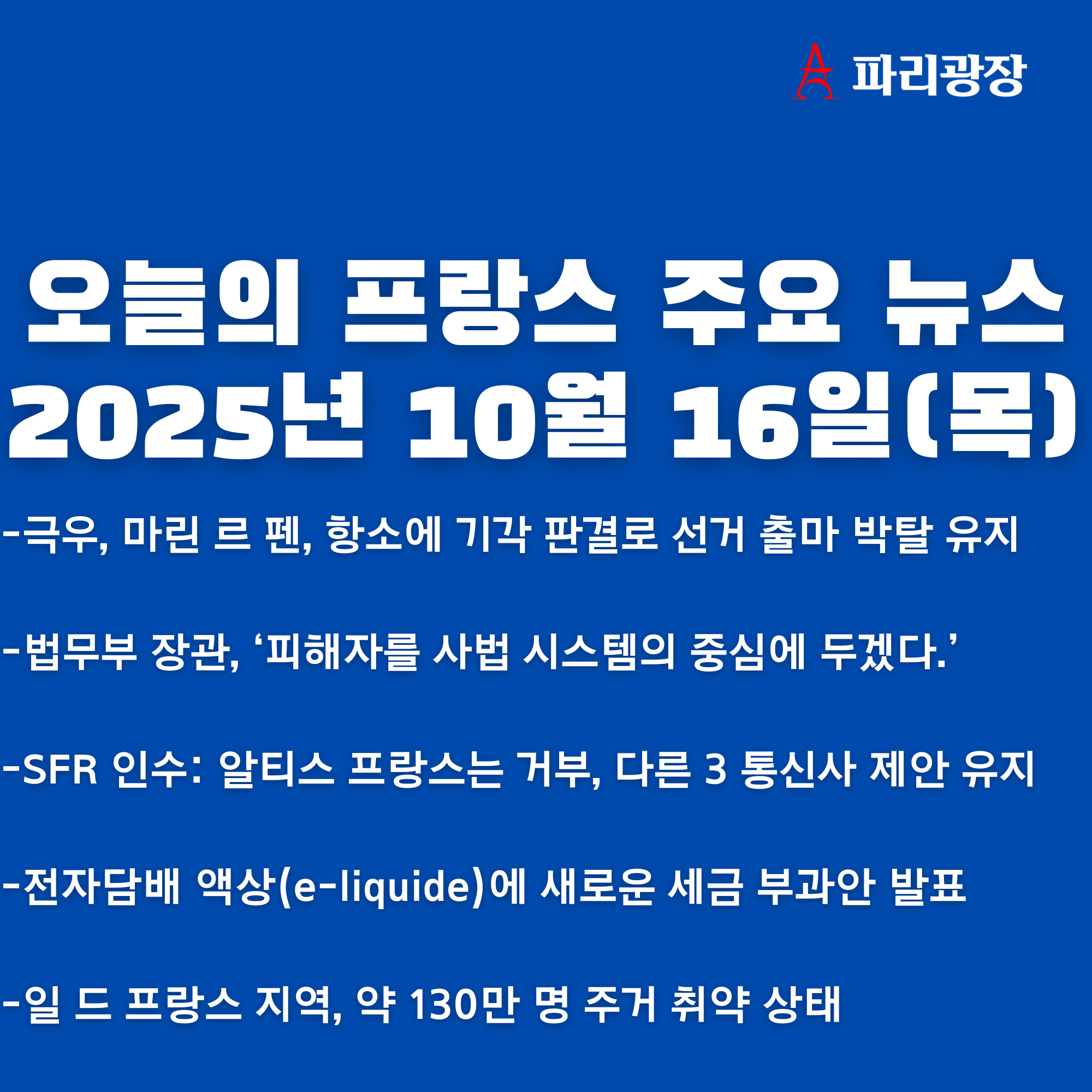 2025년 10월 16일 오늘의 프랑스 주요뉴스