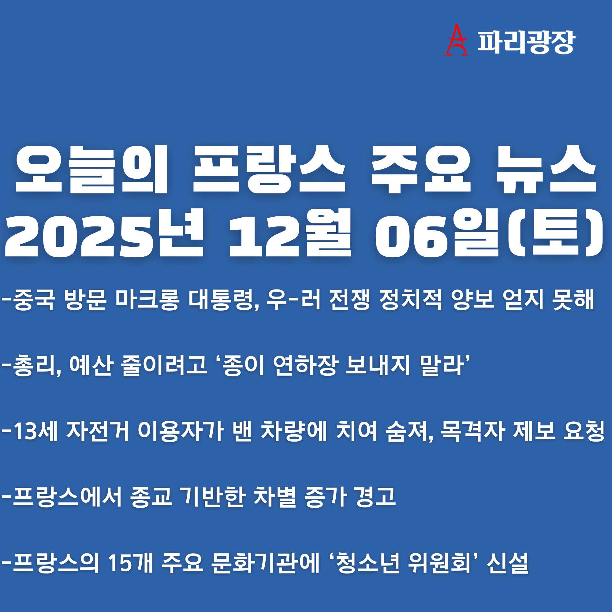 2025년 12월 06일(토) 오늘의 프랑스 주요 뉴스